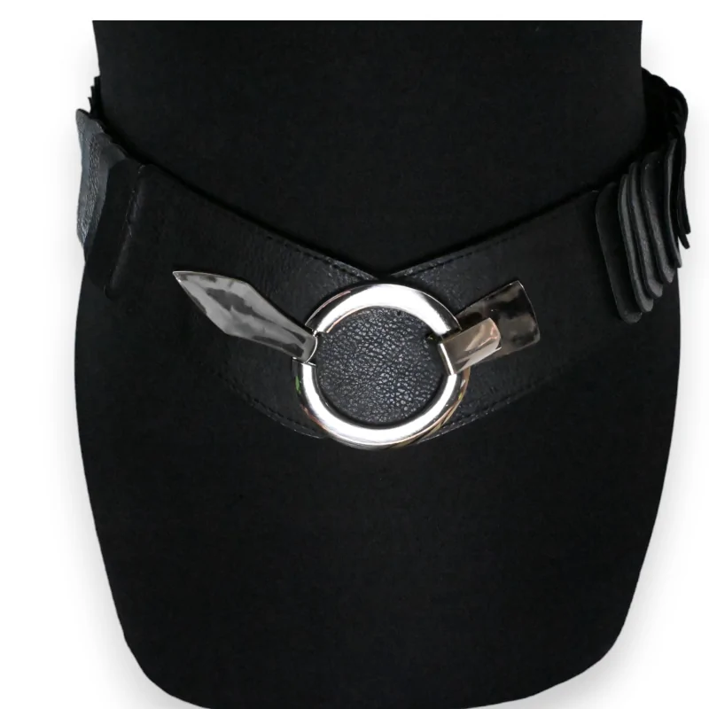 Este cinturón elástico negro para mujer combina elegancia y practicidad...