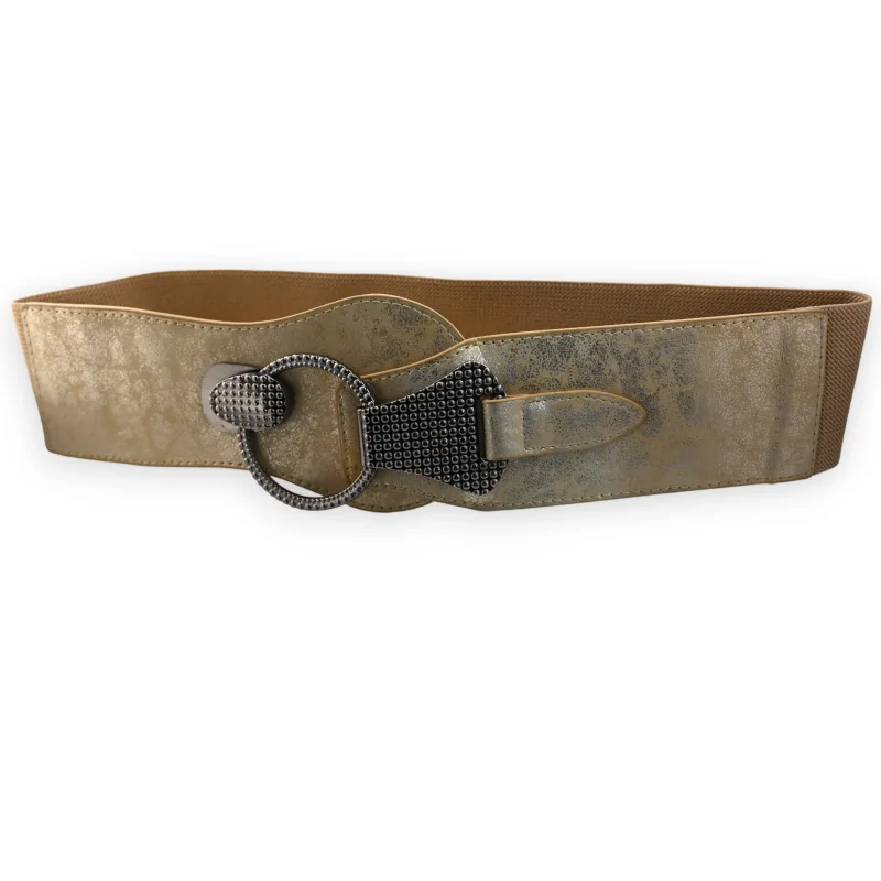 Esta cinturón, con sus bien pensadas características, está diseñada para aquellos individuos que buscan agregar un toque de elegancia a su vestimenta. Echemos un vistazo más a fondo a lo que ofrece: Diseño deslumbrante: La cinturón está adornada con una gran hebilla dorada en la parte delantera, que no es solo un elemento funcional, sino también una declaración de estilo. Esta hebilla actúa como el centro de atención, realmente haciendo destacar el cinturón en su conjunto. Naturaleza elástica: La cinturón, aunque lleva una hebilla imponente, ofrece una comodidad sin igual gracias a su material elástico. Esto garantiza un ajuste óptimo a la cintura, permitiendo al mismo tiempo algo de flexibilidad durante el uso. Cierre seguro: En la parte trasera, se ha integrado un sistema de cierre con presión. Este mecanismo no solo garantiza un ajuste seguro, sino que también facilita la colocación y la retirada de la cinturón, manteniendo al mismo tiempo un aspecto cuidado. Dimensiones precisas: El largo total de la cinturón sin estirar es de 77,50 cm. Esto permite que se adapte a una variedad de tamaños, asegurando un porte cómodo para muchos.