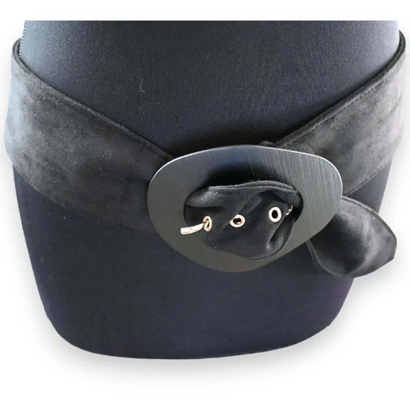 Cinturón de moda para mujer de tela de gamuza negro con hebilla de metal