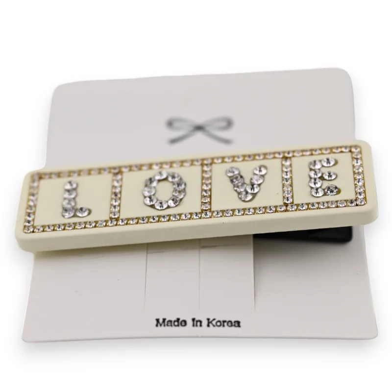 Prestamos especial atención a la calidad de nuestros accesorios para el cabello. Esta horquilla LOVE está fabricada con materiales cuidadosamente seleccionados para garantizar su longevidad. Los estrás están firmemente fijados para resistir el desgaste diario, mientras que el mecanismo de la pinza está diseñado para soportar usos repetidos sin perder su eficacia. Al invertir en este accesorio, te aseguras una joya para el cabello que se mantendrá hermosa y funcional durante mucho tiempo.