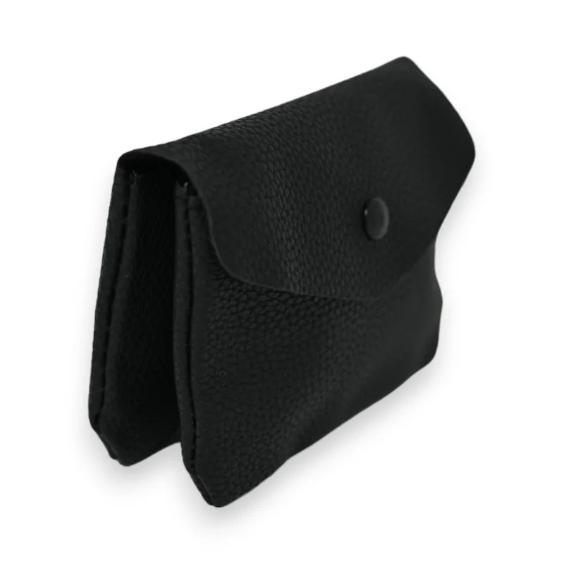 Esta sofisticada cartera, hecha de material sintético con un aspecto granulado que imita al cuero, se presenta en un clásico tono negro, añadiendo un toque de refinamiento a cualquier conjunto. Midiendo 11x9 cm, está diseñado para una organización óptima con dos compartimentos distintos, permitiendo una clara separación de sus tarjetas y dinero. Un sistema de presión práctico en el frente asegura una fácil apertura, mientras que un cierre con cremallera en el interior de uno de los compartimentos ofrece una mayor seguridad para sus objetos de valor. Completado con una cadena dotada de un anillo, esta cartera es ideal para sujetar llaves, fusionando estilo, seguridad y practicidad en un solo accesorio esencial.