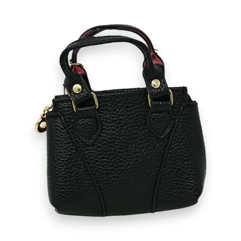 Este llavero y monedero de color negro es la quintaesencia de la sofisticación. Inspirado en los elegantes diseños de los bolsos, este accesorio en miniatura se realza con un candado dorado que no deja de añadir un toque de lujo. Diseñado para una máxima facilidad de uso, incluye un mosquetón y un gancho anilla, lo que te permite engancharlo donde quieras - ya sea a tus llaves, a un bolso, o incluso a un cinturón. Su pequeño cierre es perfectamente diseñado para asegurar tus monedas y otros pequeños esenciales, manteniendo un perfil bajo y elegante. Con sus prácticas dimensiones de 11 x 8 cm, es ideal para una organización estilizada y eficiente de tus pequeños objetos.