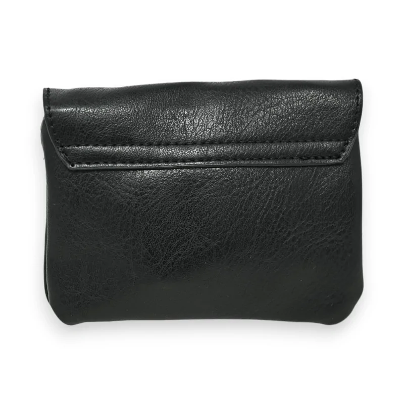 El monedero Mandoline de sintético negro combina estilo y funcionalidad. Su diseño compacto de 14x11cm incorpora un cierre de solapa magnético para un cierre seguro. La parte delantera está adornada con pequeños tachuelas decorativas que aportan un toque de elegancia. Sus múltiples compartimentos, incluido un pequeño bolsillo en el frente y un bolsillo con cremallera más grande, ofrecen un almacenamiento óptimo para sus artículos esenciales diarios. Combinando practicidad y estética, este monedero Mandoline se convertirá rápidamente en su accesorio indispensable.