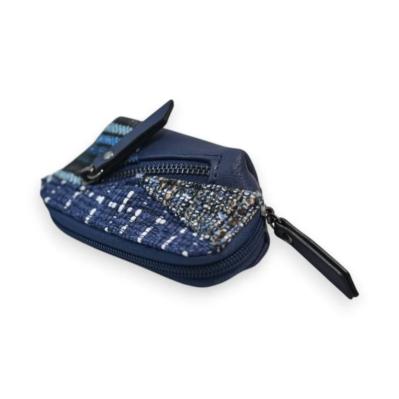 Este modelo exclusivo de la marca Mélanie Paris se adapta perfectamente a todos los estilos de vestir. Los tonos de azul cuidadosamente seleccionados y el patrón patchwork contemporáneo lo convierten en un accesorio adecuado tanto para el uso diario como para ocasiones más formales. Su tamaño óptimo permite deslizarlo fácilmente en un bolsillo o un bolso.