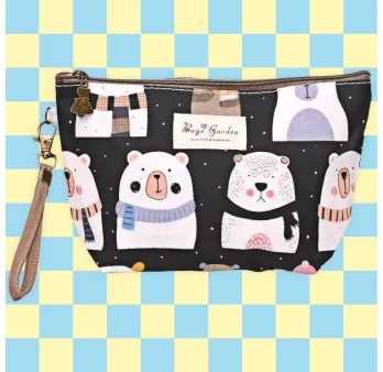 Descubre esta adorable bolsa de maquillaje con motivo de oso, el regalo ideal para las j?venes a la moda. Fabricada en tejido de poli?ster impermeabilizado duradero, ofrece un compartimento espacioso con cierre de cremallera pr?ctico y un bolsillo trasero adicional. Su dise?o tierno de colores suaves y su asa ergon?mica la convierten en el accesorio de tendencia perfecto para guardar todos tus esenciales de belleza con estilo y practicidad.