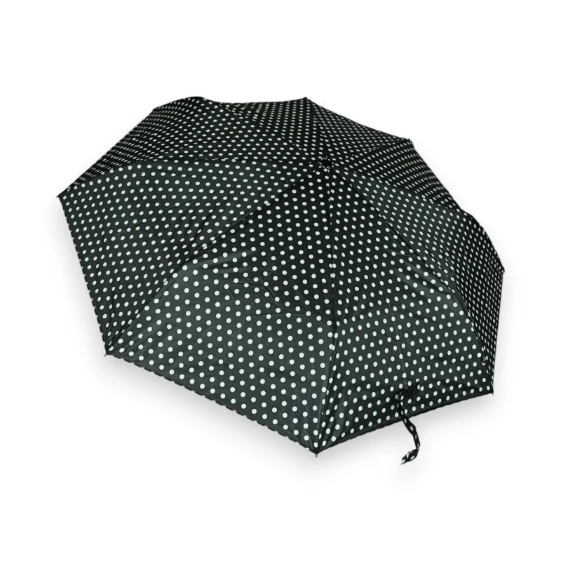 Este paraguas plegable manual es el accesorio perfecto para mantenerse seco con un toque de encanto. Con un elegante diseño de lunares blancos sobre fondo negro, añade un toque chic a tus accesorios de lluvia. Su construcción con 8 varillas garantiza durabilidad y estabilidad. Fácil de manejar, se abre manualmente hasta un generoso diámetro de 96 cm, ofreciéndote una amplia protección. Una vez plegado, alcanza un tamaño mínimo de 24 cm, lo que lo hace ultra-portátil y fácil de guardar en cualquier tipo de equipaje. Llévalo contigo a todas partes para una preparación impecable para los días lluviosos.