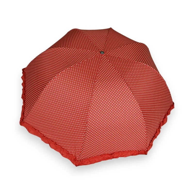 Añade un toque de romanticismo y glamour a tus días de lluvia con nuestro paraguas plegable manual. Este atractivo modelo presenta un color rojo brillante salpicado de lunares blancos, proporcionando un contraste encantador y un toque retro. Alrededor del borde, delicados volantes rodean el paraguas, añadiendo una elegancia innegable que captura la esencia del chic parisino. Perfecto para protegerte con estilo, mide 87 cm de diámetro una vez abierto, ofreciendo una amplia cobertura, y se pliega hasta solo 25 cm, facilitando así su almacenamiento en tu bolso o maletín. El paraguas también viene con una bonita funda de protección a juego, garantizando su longevidad y limpieza.