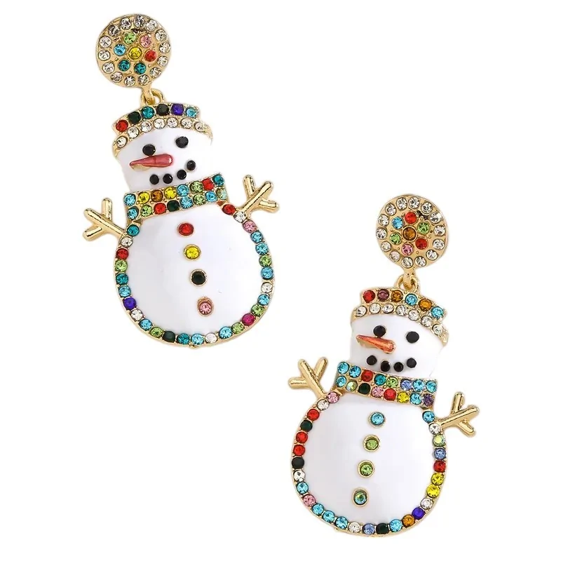 Añade un toque de magia a tus atuendos festivos con estos encantadores pendientes colgantes en forma de muñeco de nieve. Fabricados en metal dorado, están adornados con strass multicolor que aportan un toque festivo y brillante. Con una altura de 6 cm, estos pendientes de fantasía cuentan con un cierre de presión práctico y seguro. Una joya lúdica y elegante para iluminar tus veladas navideñas.