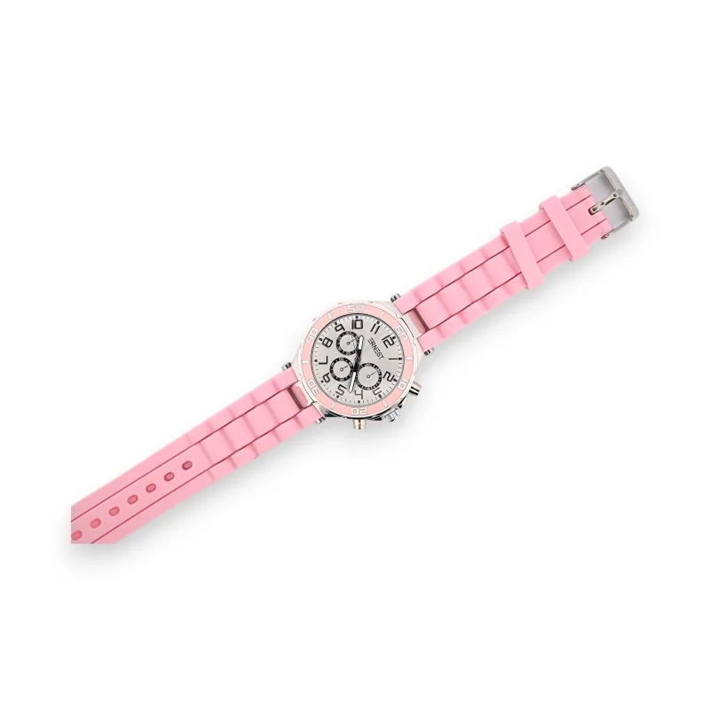 Descubre nuestro reloj pulsera de silicona, una combinación perfecta de funcionalidad y estilo, presentado en un tentador tono de rosa suave. Este reloj es mucho más que un simple accesorio; es una expresión de tu personalidad, combinando un diseño deportivo con una elegancia discreta. Su esfera, diseñada con delicadeza, atrae la mirada por su estética tanto moderna como chic, convirtiendo este reloj en una elección ideal para aquellos que llevan una vida activa sin renunciar a toques de feminidad. El fácil ajuste del reloj garantiza una experiencia de usuario sin problemas, permitiendo un ajuste perfecto a tu muñeca con un mínimo esfuerzo. Ya sea que estés vestido(a) con ropa deportiva o para una ocasión especial, este reloj se adapta a todas las circunstancias, ofreciéndote a la vez confort y estilo.