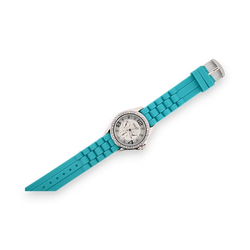 Es con gran entusiasmo que les presentamos el reloj Ernest de silicona azul turquesa con esfera cronógrafo. Este arcoíris de innovación combina una artesanía meticulosa, una estética atractiva y avances tecnológicos notables en el campo de la relojería. Fruto de numerosas horas de trabajo minucioso, se destaca como una joya brillante en el universo de los accesorios de moda.