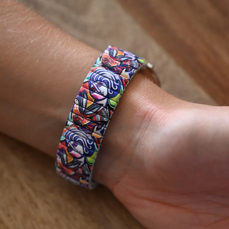 El reloj Donna Kelly para mujer combina estilo y practicidad con su pulsera elástica multicolor de acero inoxidable. Su esfera redonda de 42 mm con motivos coloridos y sus agujas luminiscentes lo convierten en un accesorio tanto moderno como funcional. Equipado con un movimiento de cuarzo de calidad, se ajusta fácilmente a todas las muñecas gracias a su pulsera flexible. Un modelo elegante y cómodo para complementar tus atuendos diarios.