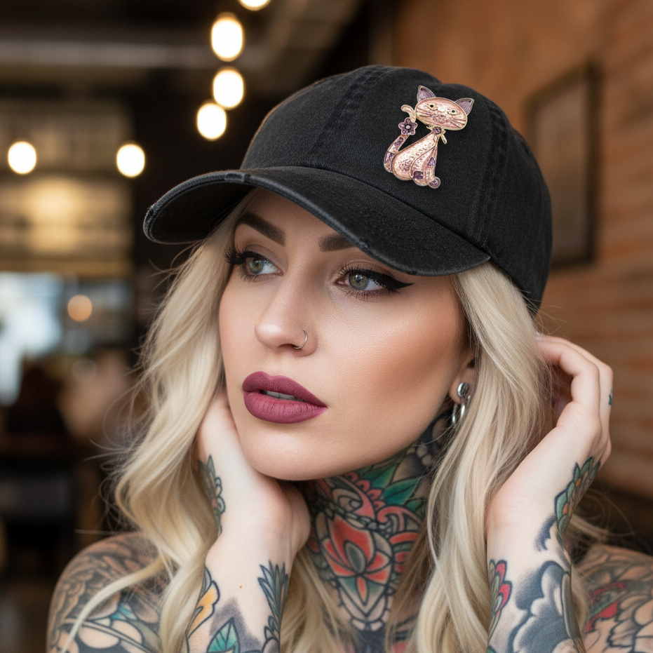 En tête de notre classement figure la broche aimantée Chat Élégant Rose Doré avec Accent Violet. Ce modèle allie charme et raffinement avec son design félin aux tonalités douces. Mesurant 3,5×5 cm, elle arbore un fini métallique rose doré rehaussé de délicats accents violets qui lui confèrent une personnalité unique. Sa taille équilibrée la rend suffisamment visible sans être envahissante, parfaite pour un usage quotidien. L'aimant intégré offre une puissance adaptée aux tissus fins comme aux matières plus épaisses.