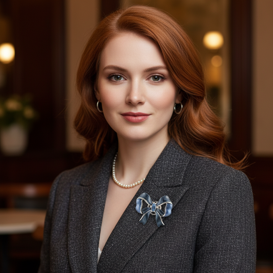 La position idéale sur un revers de veste se situe généralement à mi-chemin entre l'épaule et le premier bouton, légèrement décalée vers l'extérieur plutôt que centrée sur la couture. Cette asymétrie crée un effet visuel plus dynamique et contemporain. Pour un col de chemisier, la broche aimantée peut se placer soit au centre, soit légèrement décalée vers un côté, selon la forme du col et l'effet recherché.