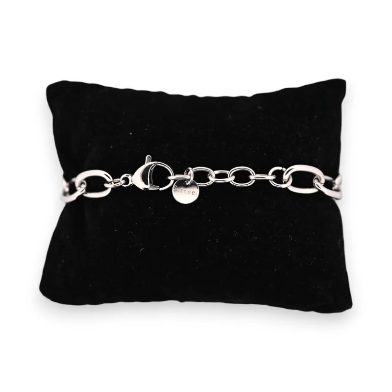 Ce bracelet en acier, avec sa chaîne argentée à grand maillon, est une merveille de conception, offrant une échappatoire vers un monde de mystère et d'élégance. Au cœur de cette création captivante repose un serpent en strass blanc scintillant, symbole de transformation et de renaissance, qui trône majestueusement. Cette représentation serpentine, incrustée de strass étincelants, confère au bracelet un éclat vibrant, capturant l'essence même de la puissance et du charme. D'une longueur de 21 cm, ce bijou s'adapte avec grâce au poignet, promettant non seulement un confort suprême mais aussi une présence inoubliable. Idéal pour ceux qui cherchent à exprimer leur force intérieure et leur individualité, ce bracelet est un véritable trésor de la collection, invitant à la contemplation et à l'admiration.