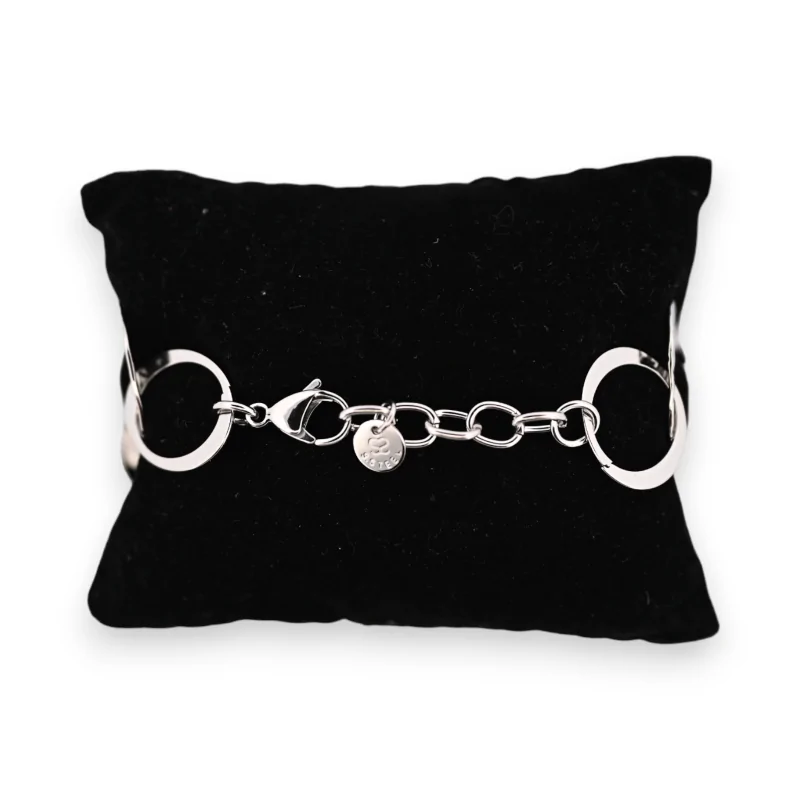 Alliant le luxe du doré à la subtilité du gris, ce bracelet est une ode à la sophistication. Son design est ponctué de charms délicatement disposés, mais l'attraction principale est l'Arbre de Vie en strass. Symbole d'interconnexion et de pérennité, cet élément scintille avec grâce, ajoutant une touche d'éclat et de profondeur à ce bijou. Outre son esthétique raffinée, sa conception ingénieuse permet une facilité d'utilisation exemplaire : en écartant délicatement ses deux extrémités, il enveloppe votre poignet, alliant élégance et fonctionnalité.