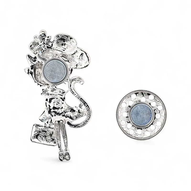 Découvrez l'élégance intemporelle avec cette broche chatte parisienne au style sophistiqué. Coiffée d'un spectaculaire chapeau rayé noir et blanc en spirale, cette dame féline incarne le chic à la française. Avec ses grandes lunettes oversized et sa robe à pois vintage, elle apporte une touche de sophistication parisienne à toutes vos tenues. Un bijou aimantée élégante qui célèbre l'art de vivre parisien avec raffinement et originalité.