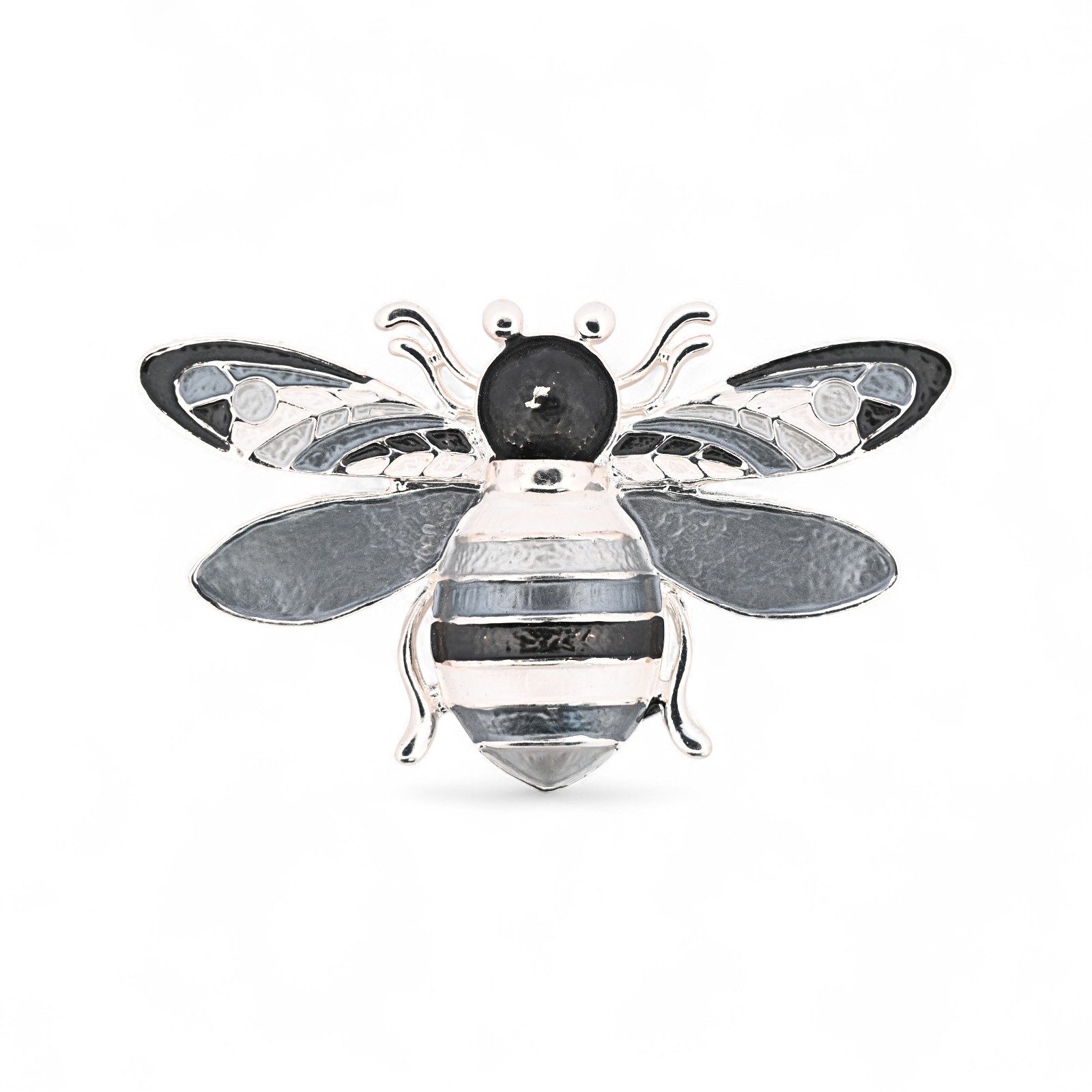 Découvrez cette magnifique broche abeille élégante au design monochrome raffiné noir, blanc et argenté. Cette pièce sophistiquée célèbre la beauté de l'abeille avec un style minimaliste intemporel. Les ailes translucides aux nervures délicates, le corps rayé graphique et la finition argentée brillante créent un accessoire abeille chic parfait pour sublimer tous vos looks avec élégance et distinction.