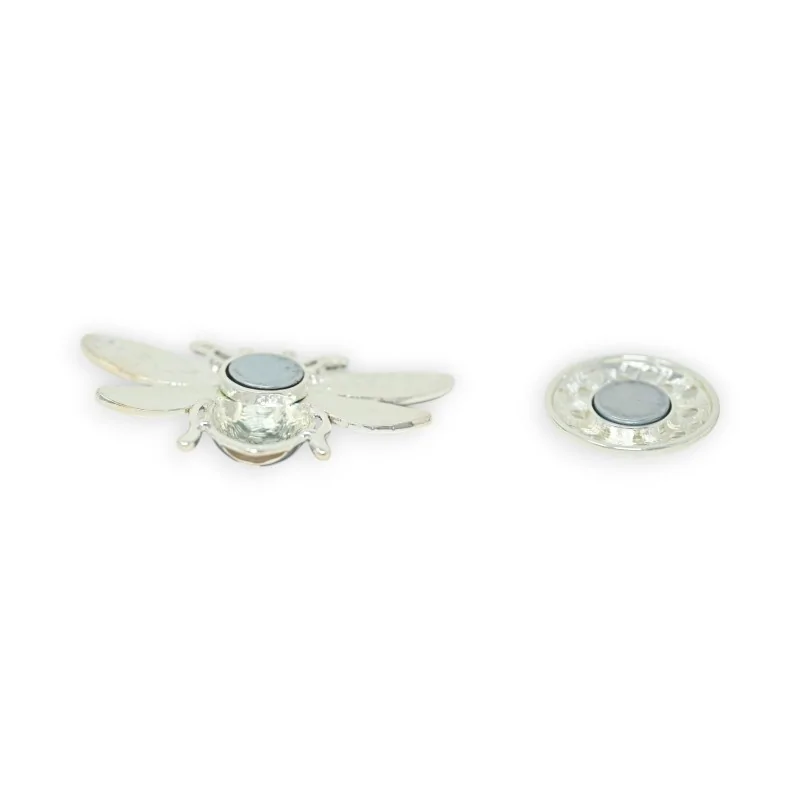 Cette élégante broche aimantée en forme d'abeille, réalisée en métal argenté, mesure 7 centimètres de largeur. Son design raffiné associe différentes teintes métalliques : argenté, doré et noir, créant un effet vintage très tendance. Les ailes déployées et les détails minutieux du corps strié confèrent à ce bijou un charme particulier. Le système d'attache magnétique permet une fixation facile et sécurisée sur vos vêtements.