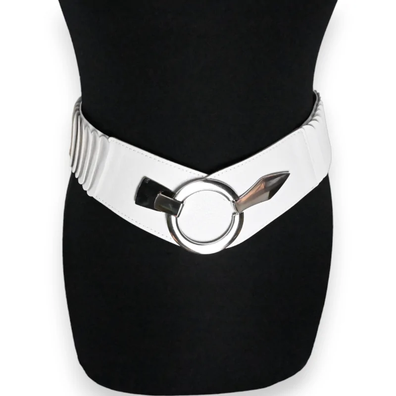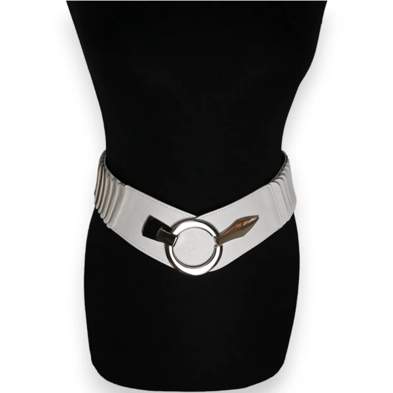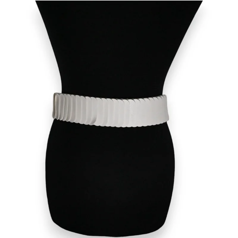 Soyez chic avec cette ceinture en teinte Blanche, offrant un style accordéon en relief sur une base synthétique. Facile à boucler grâce à son fermoir argenté, son élasticité la rend adaptée à une taille unique de 78 cm, convenant ainsi aux tailles 42 à 44.