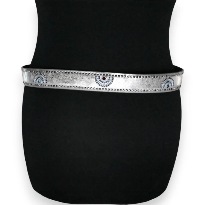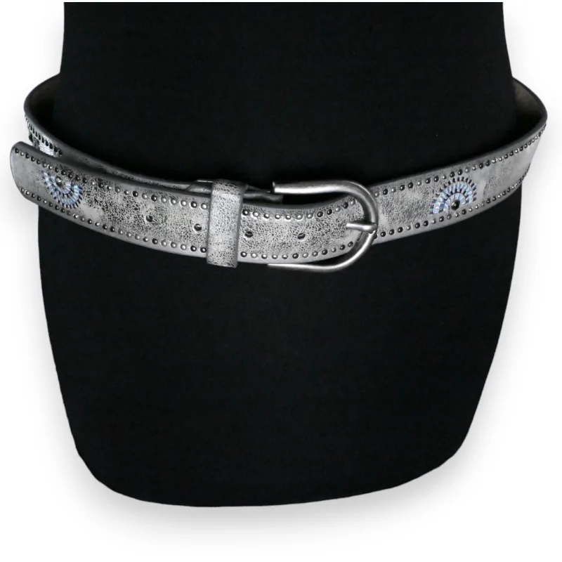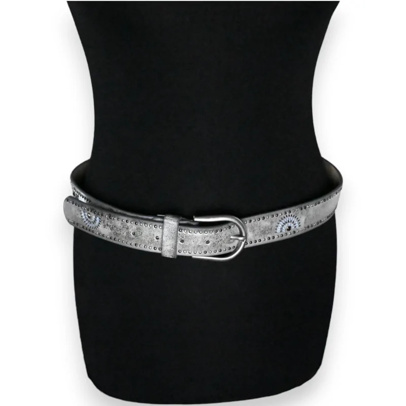 Ceinture cloutée femme argenté vieilli