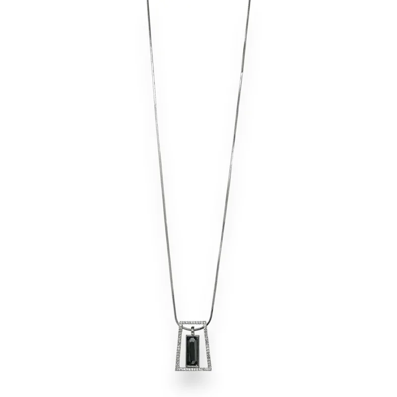 Collier long en fantaisie argentée, ce bijou se distingue par sa forme géométrique ajourée. Autour du médaillon, de délicats strass brillent, ajoutant une touche d'éclat et de sophistication. Au cœur de ce dessin géométrique se trouve une pierre rectangulaire de couleur grise. Cette pierre présente des reflets miroitants, captant la lumière et renvoyant des éclats scintillants à chaque mouvement. Le médaillon lui-même mesure 3,5 cm, tandis que la longueur totale du collier est de 42 cm. Pour assurer un ajustement parfait à chaque personne, le collier est muni d'une chaînette ajustable.