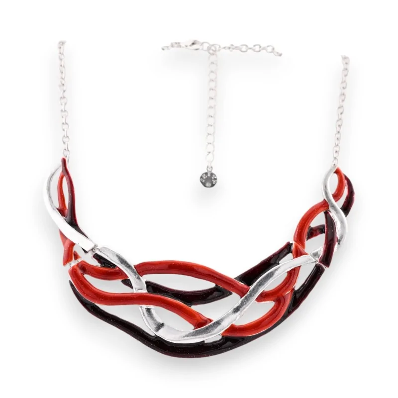 L'un des atouts majeurs de ce collier réside dans sa polyvalence exceptionnelle. Ses nuances de rouge vibrantes s'accordent aussi bien avec une tenue de soirée élégante qu'avec un ensemble plus décontracté pour le quotidien. Portez-le sur un col rond pour un effet chic et sophistiqué, ou laissez-le illuminer un décolleté plus profond lors d'une occasion spéciale. Le contraste entre le métal argenté et les entrelacs rouges permet à ce bijou de se marier harmonieusement avec une large palette de couleurs et de styles vestimentaires.