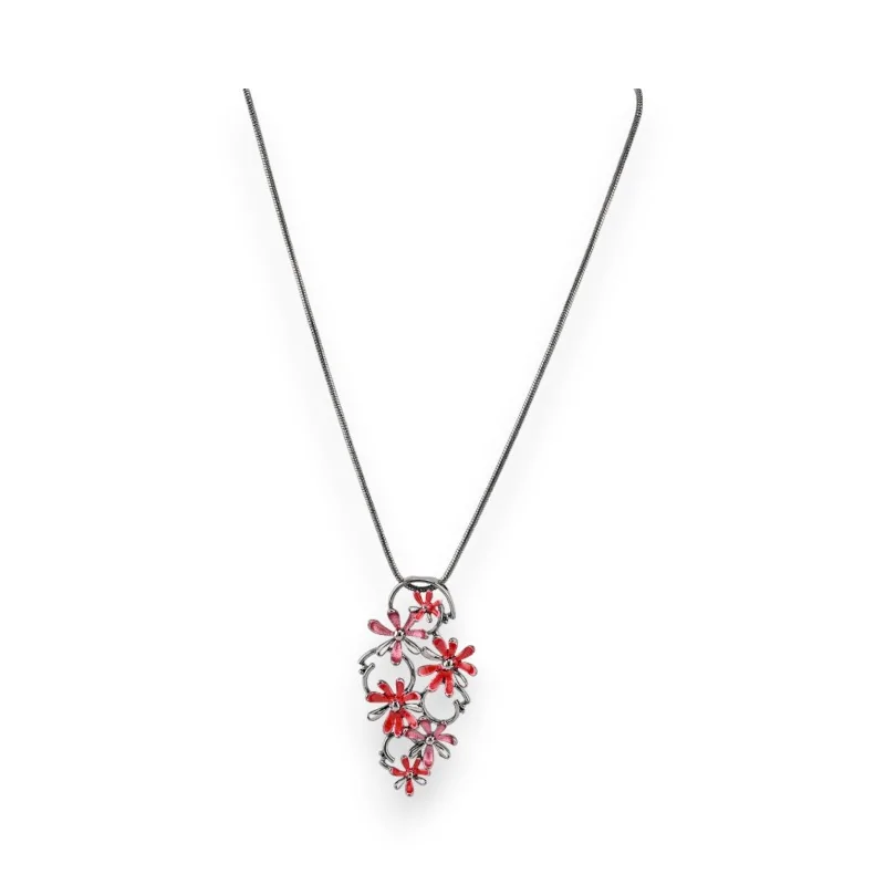 Ce collier fantaisie de la marque Ikita est un véritable bijou de créateur qui ne manquera pas d'attirer tous les regards. Son médaillon composé de multiples fleurs rouges apporte une touche florale et romantique à votre look. La chaîne en métal gris foncé contraste élégamment avec les tons vifs du pendentif, créant un ensemble harmonieux et raffiné. D'une longueur de 25 cm, avec une rallonge de 8 cm, ce collier s'adapte parfaitement à toutes les morphologies.