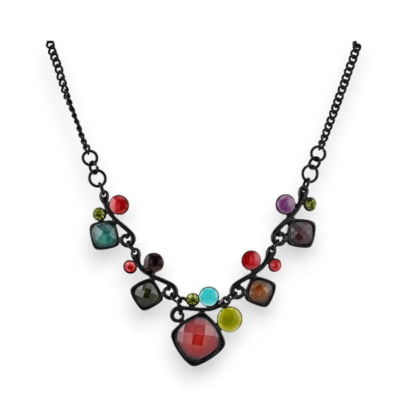 Ce magnifique collier fantaisie de la marque Ikita allie élégance et originalité. Monté sur une chaîne en métal noir, il est orné de différentes pierres colorées aux formes variées qui lui confèrent un style ethnique chic. Avec sa hauteur de 22 cm et sa rallonge de 7 cm, il s'adaptera parfaitement à votre cou pour sublimer vos tenues du quotidien comme vos looks de soirée. Un bijou tendance qui ne passera pas inaperçu !
