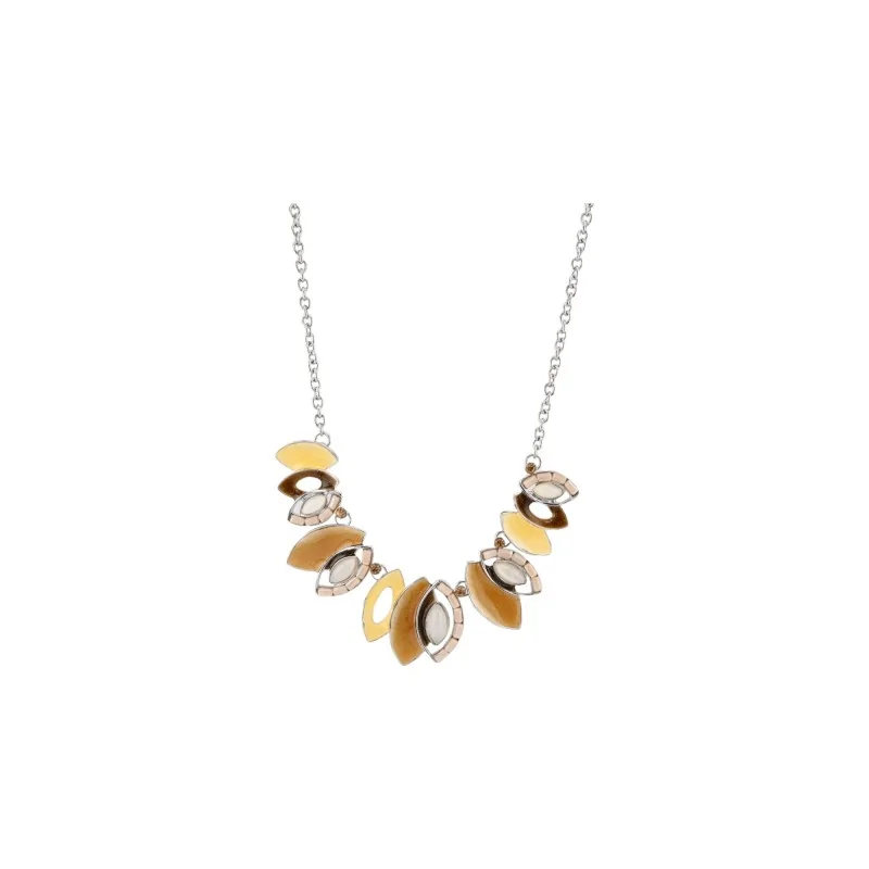 Le collier fantaisie Ikita aux feuilles d'automne est un véritable bijou de saison. Son motif délicat s'inspire de la nature avec des feuilles finement ciselées dans des tons chauds de beige et marron. Le métal argenté apporte une touche de brillance et de modernité à l'ensemble. D'une hauteur de 22 cm, ce collier s'adapte parfaitement à la morphologie grâce à sa rallonge de 7 cm. Il peut ainsi se porter près du cou ou légèrement plus bas selon vos envies et vos tenues.
