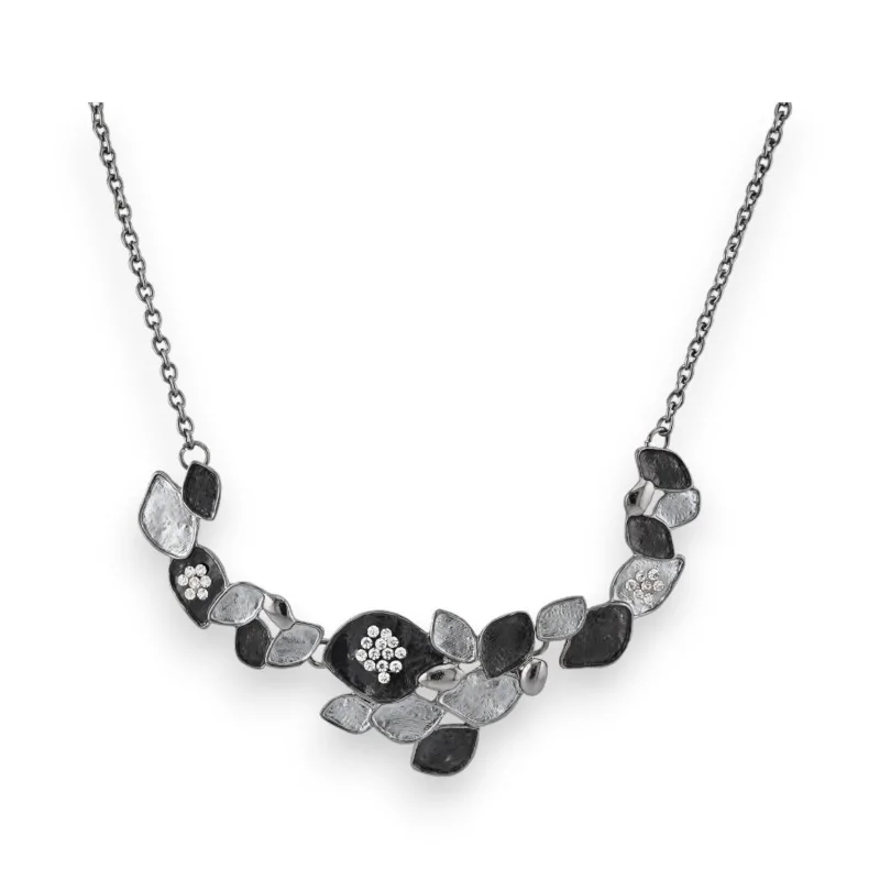 Fabriqué en métal gris foncé résistant, ce collier fantaisie allie style et durabilité. Sa conception soignée lui permet de conserver son éclat même après de nombreux ports. Les éléments floraux délicatement travaillés créent un joli jeu de lumière qui mettra en valeur votre décolleté.La fermeture sécurisée et la chaîne solide assurent un maintien parfait du collier. Vous pourrez le porter en toute tranquillité pour toutes vos occasions, du bureau aux soirées entre amis.