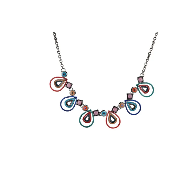 Avec son style graphique et coloré, ce collier fantaisie s'inscrit parfaitement dans les tendances mode actuelles. Il apportera une touche de gaieté à une tenue sobre ou viendra compléter un look déjà coloré. Idéal pour accessoiriser une robe d'été, un top uni ou même un pull en hiver, il s'adapte à toutes les saisons. C'est le bijou parfait pour les femmes qui aiment affirmer leur personnalité à travers des accessoires originaux.
