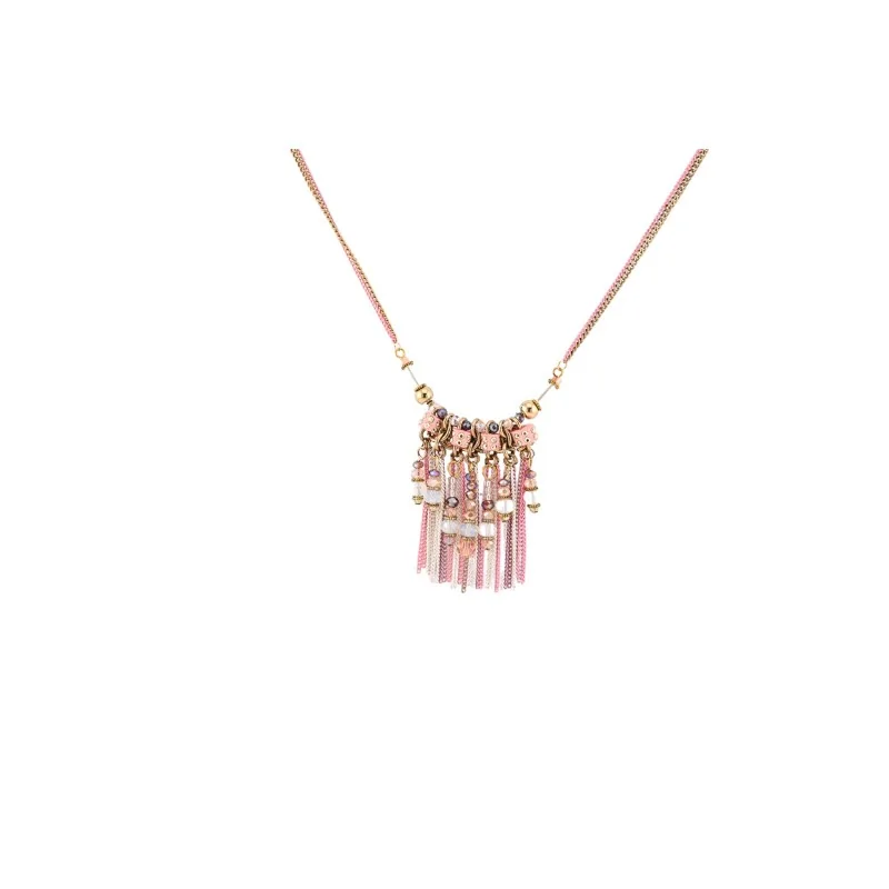Ce magnifique collier fantaisie signé Ikita arbore un design bohème chic avec ses délicates franges roses et dorées. Le tour de cou mesure 40 cm et est doté d'une rallonge de 7 cm pour s'adapter à toutes les morphologies. Les perles et breloques apportent une touche scintillante à ce bijou tendance qui sublimera vos tenues estivales comme vos looks de soirée.