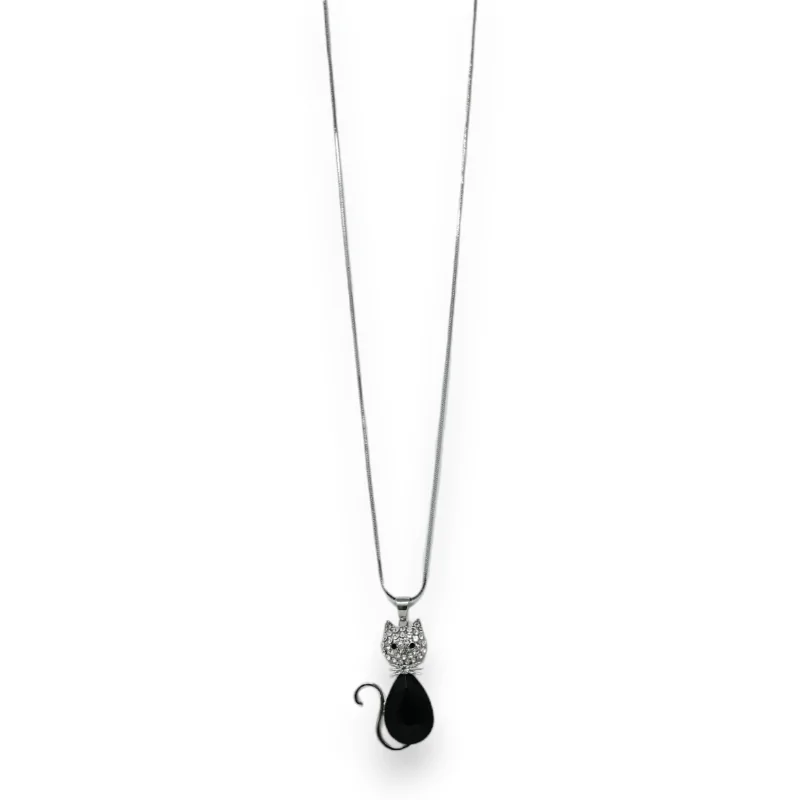 Découvrez un collier fantaisie qui capture la malice et la douceur d'un chaton, cette créature si tendre qui séduit les cœurs de nombreux amateurs de bijoux. Le pendentif met en avant un charmant chaton, délicatement façonné en strass argenté qui brillent et scintillent à chaque mouvement, reflétant la lumière de manière envoûtante. La dimension précise du médaillon est de 3,8 cm, un format idéal pour mettre en valeur les détails fins du chaton tout en restant subtil et élégant. Quand ce pendentif est attaché à sa chaîne délicate, la longueur totale du collier s'établit à 38 cm. Pour ceux qui cherchent un ajustement parfait ou une adaptation en fonction de la tenue choisie, une chaîne adaptable est judicieusement intégrée, permettant d'ajuster sa longueur à votre gré.