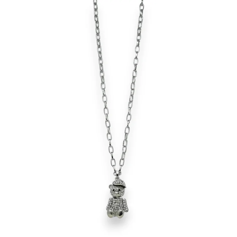 Découvrez le charme intemporel avec ce collier fantaisie long argenté, où l'innocence rencontre l'élégance. Au cœur de ce bijou se trouve une représentation adorable d'un nounours, symbole universel de douceur et de tendresse. Mais ce n'est pas un nounours ordinaire : coiffé d'une casquette stylisée, il se distingue par sa modernité et sa touche ludique. L'ensemble de la figurine est orné de strass blancs étincelants, captant la lumière à chaque mouvement et offrant un scintillement exceptionnel. Le médaillon, d'une dimension harmonieuse de 4,5 cm, est attaché à une chaîne argentée élégante de 42 cm. Pour assurer un ajustement optimal et répondre à chaque style, une chaînette ajustable est ajoutée, permettant de personnaliser la longueur selon vos préférences.