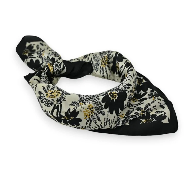 Avec son style intemporel et sa qualité de fabrication, ce foulard carré floral noir et blanc deviendra rapidement un indispensable de votre garde-robe. Polyvalent et élégant, il saura sublimer vos tenues en toute occasion et mettra en valeur votre féminité avec raffinement.