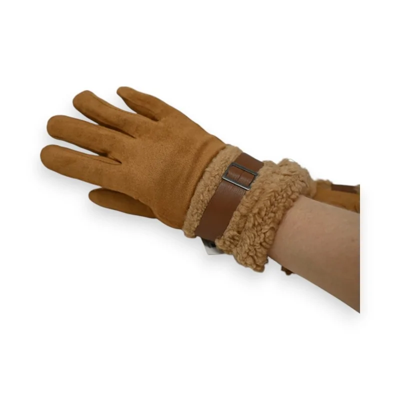 Ces gants chauds en suédine combinent à merveille confort et style pour la saison froide. Leur extérieur en suédine camel apporte une touche d'élégance sobre qui s'accorde facilement avec vos tenues d'hiver. À l'intérieur, la doublure moumoute ultra-douce enveloppe vos mains d'une chaleur réconfortante, même lors des journées les plus froides. La coupe universelle en taille unique s'adapte parfaitement à la plupart des morphologies, pour un confort optimal.