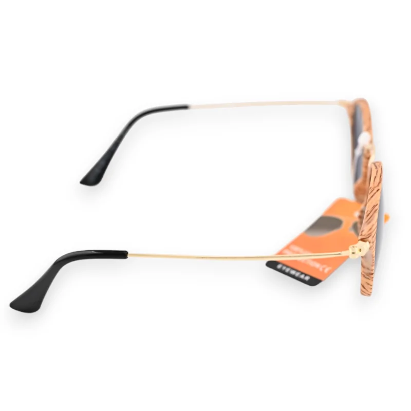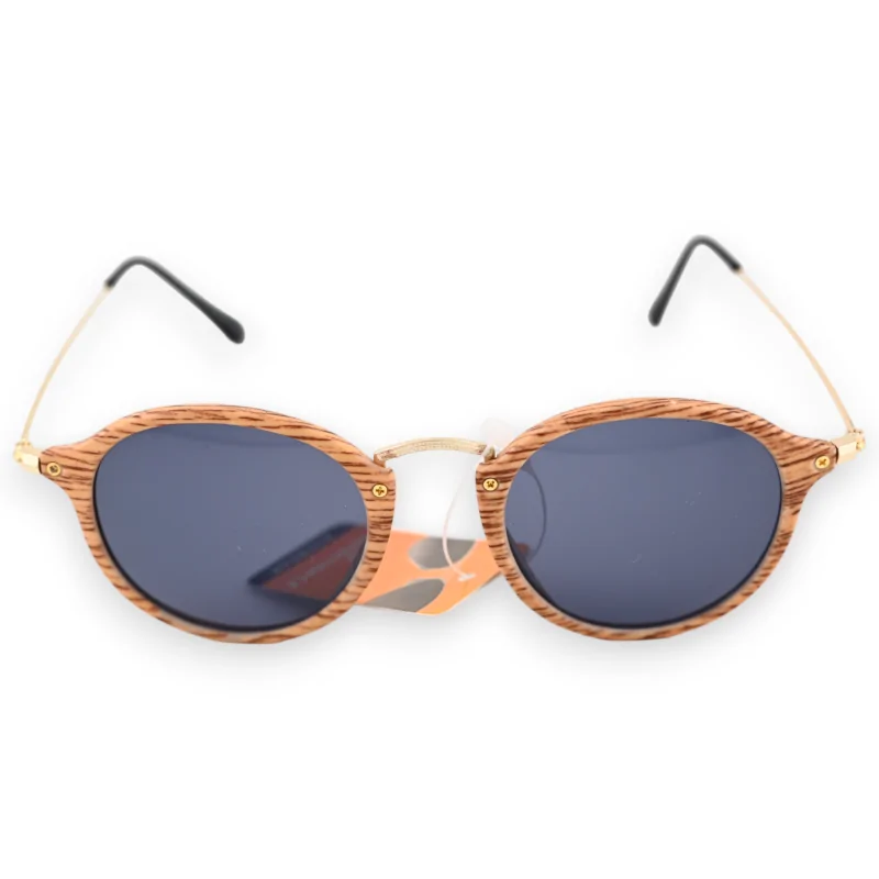 Cette paire de lunettes, avec sa forme ronde, incarne un mélange parfait de légèreté et de confort, tout en affichant un style remarquable. La monture se distingue par un effet bois clair, apportant une touche d'originalité et de naturel. Ce design en imitation bois est non seulement esthétique mais ajoute également un élément unique et contemporain à l'ensemble, parfait pour ceux qui apprécient les accessoires qui sortent de l'ordinaire. La légèreté de la monture assure un confort optimal, permettant de les porter tout au long de la journée sans gêne. Cette caractéristique est essentielle pour ceux qui privilégient le confort sans sacrifier le style. De plus, la forme ronde de la monture offre une esthétique intemporelle et versatile, s'adaptant à divers types de visages et de styles personnels. Les branches de ces lunettes combinent harmonieusement le doré et le noir, ajoutant une dimension de sophistication et de chic.