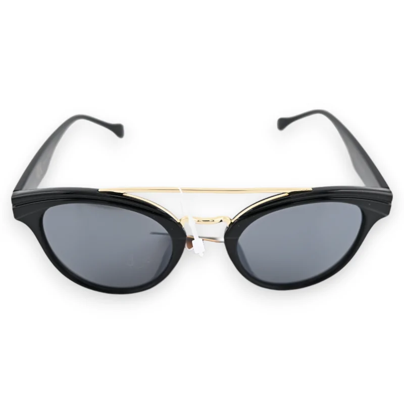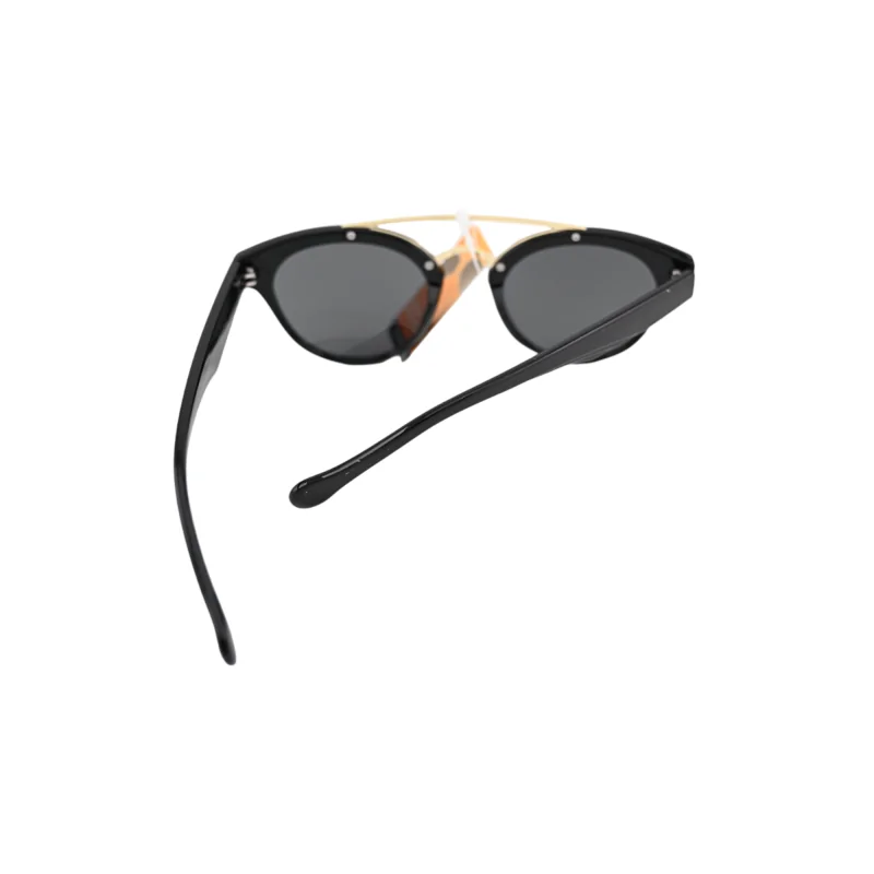 "Lunettes de soleil rondes au design élégant, présentant une monture noire sophistiquée accompagnée d'une barre transversale dorée, ajoutant une touche chic et intemporelle. Ce design unique mêle la modernité d'une monture noire, soulignant les lignes épurées et le style contemporain, avec l'élégance classique d'un pont doré, évoquant un sens du luxe discret. Idéales pour une variété d'occasions, ces lunettes s'adaptent aussi bien aux tenues décontractées qu'aux ensembles plus formels, offrant une polyvalence remarquable. La combinaison du noir et de l'or crée un contraste saisissant, rendant ces lunettes non seulement un accessoire pratique pour se protéger du soleil, mais également un élément clé pour rehausser tout style vestimentaire."