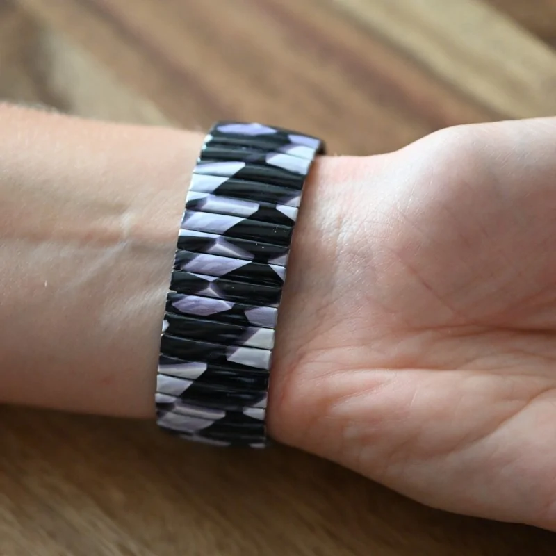 La montre ERNEST se dévoile dans une splendeur graphique, mêlant motifs géométriques en noir et blanc pour offrir un design à la fois intemporel et moderne. Ces motifs, évoquant une danse entre le contraste et l'harmonie, font de cette montre un accessoire sobre qui saura se marier avec n'importe quelle tenue. Au-delà de son esthétisme recherché, cette montre ERNEST est conçue pour le quotidien. Sa légèreté en fait un compagnon idéal pour toutes vos journées, assurant un confort incomparable à votre poignet. Sa praticité est renforcée par la qualité irréprochable de ses composants, témoignant de l'expertise et du soin apporté à sa conception. Pour couronner le tout, son cadran est orné de strass scintillants, ajoutant une touche d'éclat subtil, faisant de cette montre bien plus qu'un simple instrument de mesure du temps. C'est une déclaration de style, une fusion entre art et fonctionnalité.