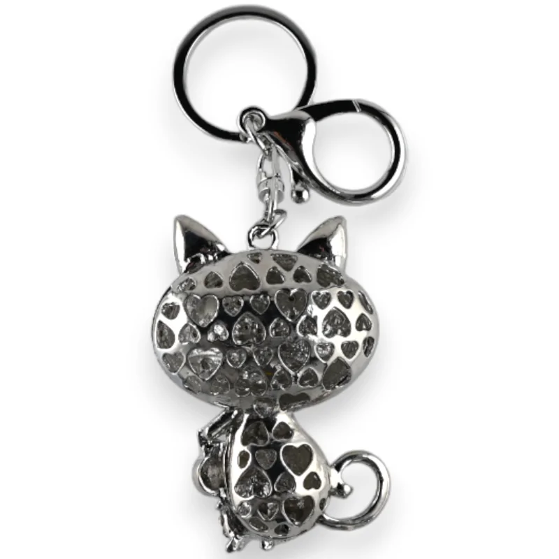 Mettez en valeur votre trousseau avec ce porte-clés argenté, qui dépeint avec délicatesse et finesse une scène touchante : un chat maternel veillant sur son petit. Cette représentation symbolique de l'amour maternel est sublimée par des strass blancs étincelants, reflétant chaque rayon de lumière pour donner vie à ces figures félines. Chaque détail a été méticuleusement pensé, des contours soignés du chat et de son chaton à la brillance des strass qui les recouvrent, apportant une dimension de luxe et d'élégance à l'ensemble. Avec une dimension de 6 cm sans l'attache, ce porte-clés est à la fois discret et remarquable.