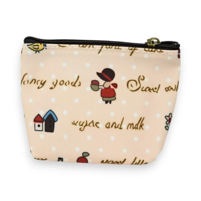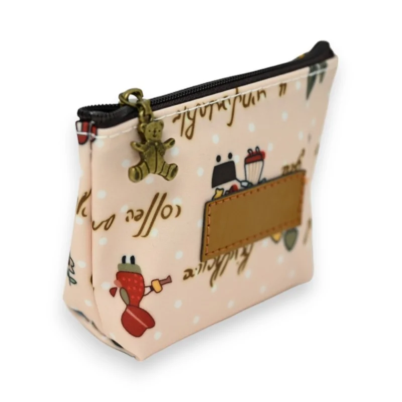 Découvrez notre porte-monnaie en polyester, un mélange parfait de fonctionnalité et de fantaisie. Orné d'un imprimé délicat d'écritures et de petits motifs adorables, ce porte-monnaie se distingue par son fond rose tendre parsemé de petits pois blancs. Compact avec ses dimensions de 11x8 cm, il est idéal pour ranger petites monnaies et cartes en toute sécurité grâce à sa fermeture éclair. La tirette en forme de nounours ajoute une touche ludique et pratique, rendant ce porte-monnaie particulièrement attrayant pour les jeunes ou ceux qui conservent une âme d'enfant.