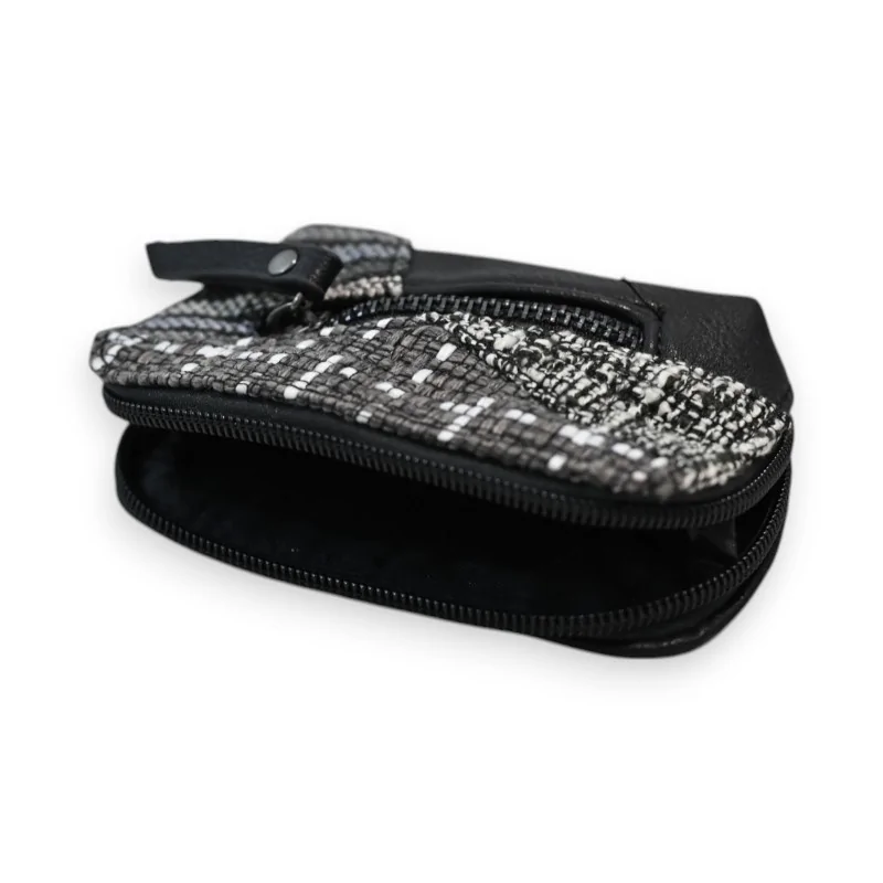 Le porte-monnaie Mélanie Paris se distingue par son design en patchwork unique aux tons noir et gris. Sa conception en matière synthétique allie durabilité et élégance, tandis que ses dimensions de 12x7cm en font un accessoire parfaitement adapté au quotidien. Le motif patchwork, différent sur chaque modèle, confère une touche d'originalité à chaque pièce.