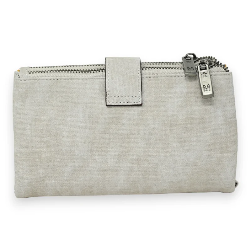 Le portefeuille multipoches Mélanie Paris allie élégance et fonctionnalité grâce à sa conception ingénieuse en matière synthétique beige taupe. Doté de trois compartiments zippés distincts et d'une doublure raffinée à motifs imprimés, il offre un espace de rangement optimal pour vos effets personnels.