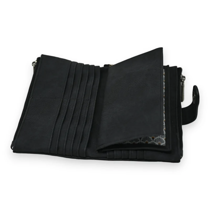 Ce modèle spacieux offre une organisation optimale grâce à ses multiples compartiments pour cartes, ses poches pour documents et son compartiment zippé dédié aux billets et à la monnaie. Ses dimensions de 19 x 11 x 2,5 cm en font un accessoire idéal pour un usage quotidien.