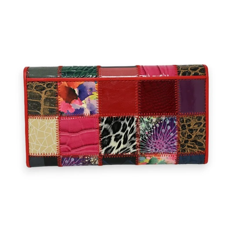 Optez pour l'élégance fonctionnelle avec ce portefeuille en cuir de style patchwork. Chaque pièce de cuir est soigneusement assemblée pour former un design multicolore avec un fini brillant et des touches de rouge. Ce portefeuille est parfaitement adapté pour organiser vos essentiels : il offre des emplacements pour une variété de cartes, un espace dédié pour votre chéquier, et une pochette sécurisée avec fermeture éclair pour les pièces. Mesurant 20 x 11 cm, il est conçu pour ceux qui privilégient l'organisation sans compromettre le style.