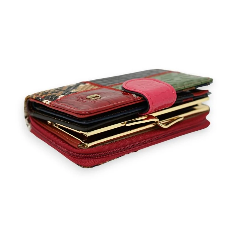 Découvrez notre portefeuille et porte-monnaie en cuir, soigneusement élaboré pour allier style et fonctionnalité. De forme rectangulaire et fabriqué à partir de cuir véritable à 100 %, il mesure 9 x 13 cm et présente un patchwork original qui capte l'œil. Son agencement intérieur est pensé pour faciliter l'accès à vos cartes et billets, avec en plus un porte-monnaie en métal intégré pour vos pièces. Une pochette zippée vient compléter cet ensemble, offrant un espace sécurisé supplémentaire pour vos petits objets. Ce portefeuille compact est idéal pour ceux qui cherchent à garder leurs affaires essentielles organisées avec élégance.