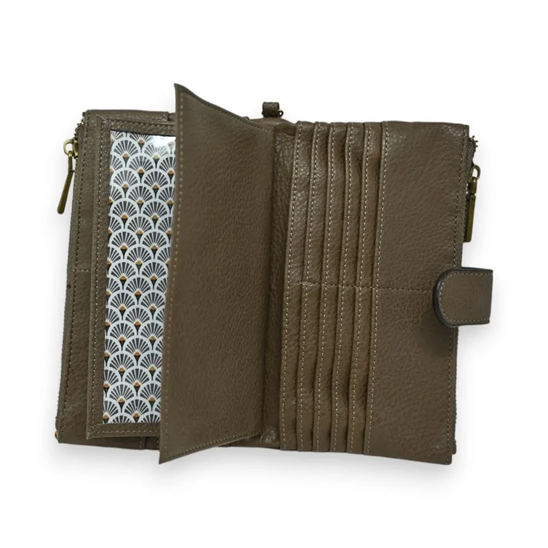 Le portefeuille compagnon Mandoline en synthétique taupe allie élégance et praticité. Doté de multiples rangements, dont 2 poches zippées et un espace pour chéquier, il s'adapte à tous vos besoins. Son format compact de 19x11cm et sa fermeture aimantée en font l'accessoire idéal au quotidien. Avec ses finitions soignées et son style vintage, ce portefeuille polyvalent deviendra vite indispensable.