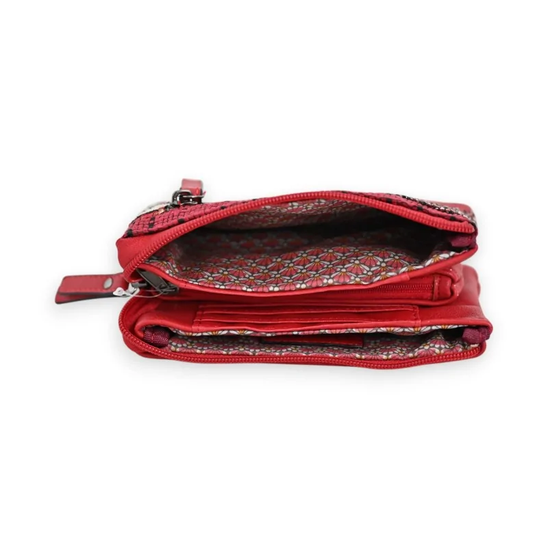 Le portefeuille patchwork Mélanie Paris allie style et fonctionnalité dans un format compact de 16x9cm. Sa face avant arbore un patchwork unique aux nuances de rouge, rendant chaque pièce exclusive. Doté de trois compartiments zippés distincts et d'espaces dédiés pour les cartes, il offre une organisation optimale de vos essentiels.