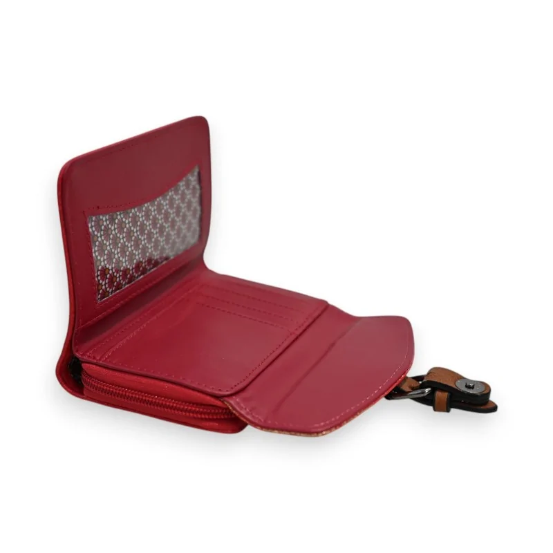 La conception intelligente de ce portefeuille permet de transporter l'essentiel sans encombrement. Le format compact s'adapte parfaitement aux petits sacs tout en offrant une capacité de rangement surprenante grâce à son système accordéon. La doublure imprimée facilite le repérage rapide des différents compartiments.