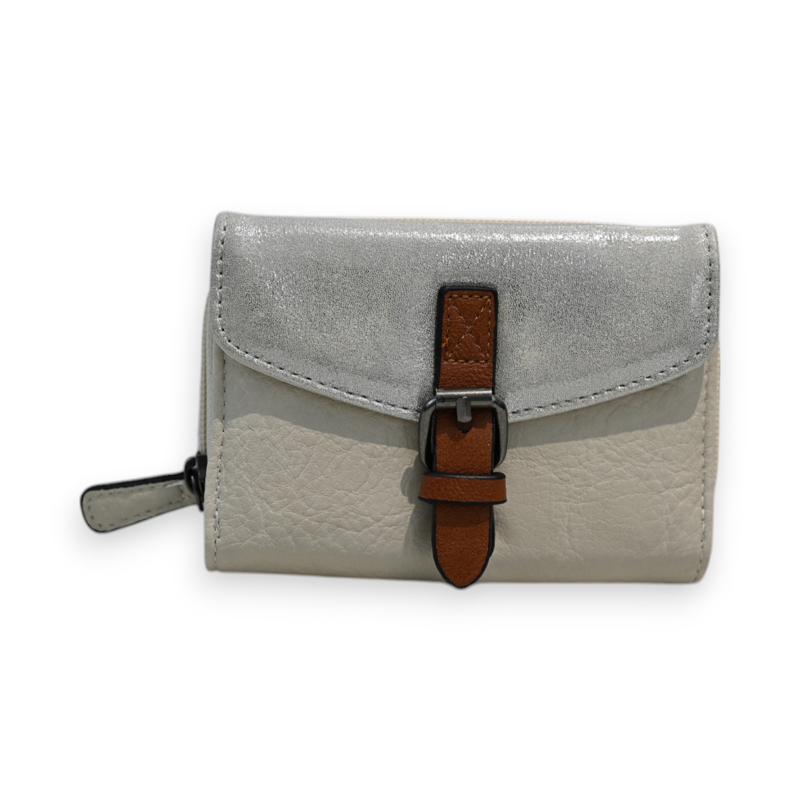 Le portefeuille compact Mélanie Paris associe élégance et fonctionnalité dans un format idéal pour le quotidien. Son design bicolore argenté-crème est rehaussé d'une sangle camel distinctive, créant un accessoire sophistiqué et contemporain. La finition brillante du rabat apporte une touche de raffinement, tandis que sa conception accordéon offre une capacité de rangement optimale.